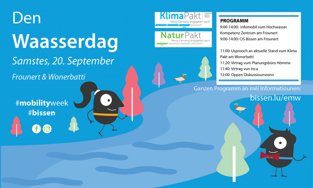 Zousätzlech fannt Dir tëschent 9:00 an 14:00 Auer den Infomobil vum HochwasserKompetenzCentrum Köln (HKC) am Frounert grad esou wéi déi Biisser Pompjeen – kommt laanscht a loosst Iech och do informéieren!